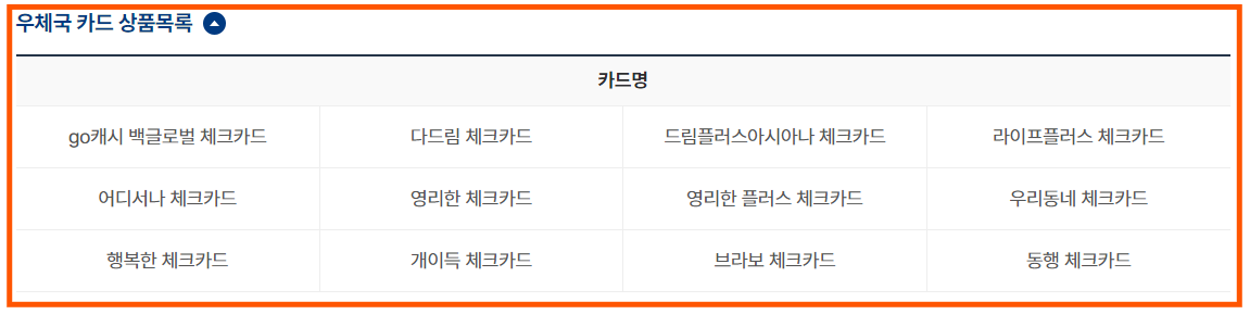 📌 아래 카드 상품목록에 있는 카드를 소지하신 분은 디지털 바우처를 바로 신청하시면됩니다.