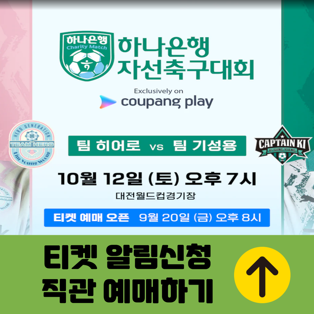 임영웅 대 기성용, 하나은행 자선 축구 경기 티켓이 9월 20일 금요일 오후 8시에 오픈됩니다!