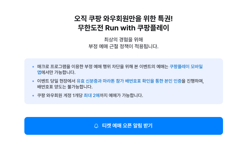 이번 무한도전 마라톤은 쿠팡 와우회원만 신청 가능한 단독 이벤트입니다.